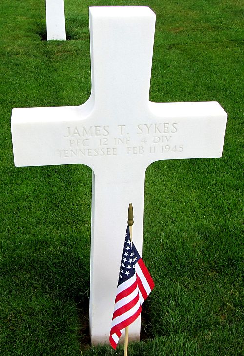 Pfc James T. Sykes enlisted at Camp Shelby, Mississippi on 21 June 1944.Source of information: Peter Schouteten, Danny van der Groen – Company’s / 4ID After Action Reports, www.abmc.gov, www.wwiimemorial.com, www.archives.gov – WWII Enlistment Record, www.ancestry.com - Headstone and Interment Record / U.S. Social Security Death Index / Woods Family Tree