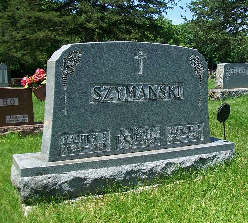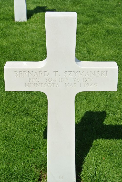 Pfc Bernard T. Szymanski joined the National Guard in Faribault, Minnesota on 6 January 1941.He is remembered at Sacred Heart Cemetery in Owatonna, Steele County, Minnesota with a memorial marker.