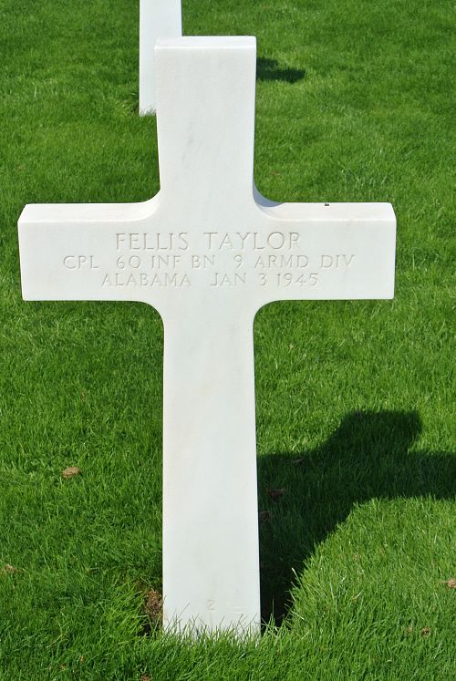 Cpl Fellis Taylor enlisted at Fort McClellan, Alabama on 17 June 1941.Source of information: André Koch, www.abmc.gov, www.wwiimemorial.com, www.archives.gov - WWII Enlistment Record, www.ancestry.com - Headstone and Interment Record / 1920/1930/1940 Census / U.S. WWII Draft Cards Young Men 1940-1947, After Action Report 60th Armored Infantry Battalion