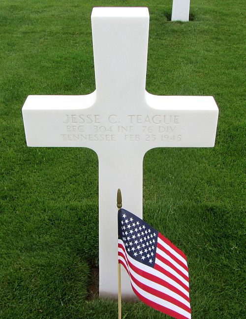 Pfc Jesse C. Teague enlisted at Fort Oglethorpe, Tennessee on 28 May 1943.Source of information: André Koch, www.abmc.gov, www.wwiimemorial.com, www.archives.gov - WWII Enlistment Record, www.ancestry.com - Headstone and Interment Record / 1910/1920/1930/1940 Census, http://76thdivision.com