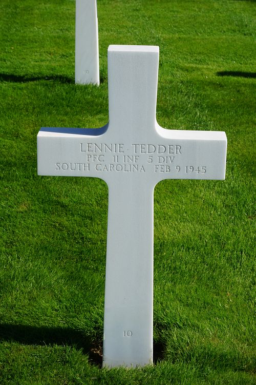 Pfc Lennie J. Tedder joined the Regular Army at Fort Jackson, Columbia, South Carolina. He worked on a farm before he enlisted.At the time of his death the 11th Infantry Regiment was engaged in the fighting at the bridgehead on the Sauer River, North of Echternach, Germany.