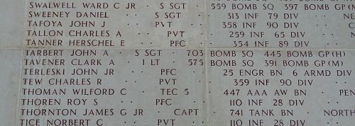 Pvt Charles R. Tew was a mechanic and repairman before he enlisted at Camp Blanding, Florida on 14 March 1944.Source of information: Peter Schouteten, www.abmc.gov, www.wwiimemorial.com, www.archives.gov - WWII Enlistment Record, www.ancestry.com - Tew Family Tree
