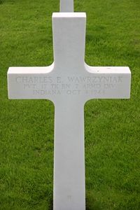 Pvt Charles E. Wawrzyniak attended high school for 2 years and was a mechanic. He enlisted at Fort Benjamin Harrison, Indiana on 27 March 1942.He was wounded during a fight between two