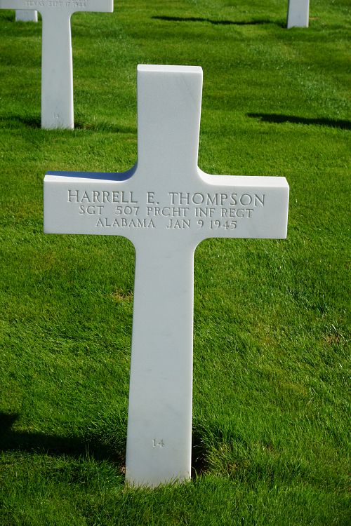 Source of information: Peter Schouteten, www.abmc.gov, www.wwiimemorial.com, www.archives.gov, www.ancestry.com - Headstone and Interment Record / U.S. WWII Draft Cards Young Men / Thompson Family Tree / 1940 Census, www.findagrave.com – ForgetMeNot, www.ww2-airborne.us