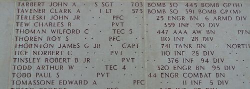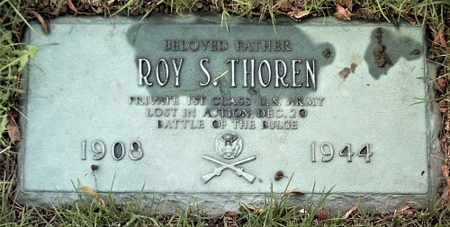 Pfc Roy S. Thoren was officially declared dead one year and one day after he was reported missing in action. At that time his unit was fighting in the vicinity of Ettelbruck.He is remembered at the Mount Emblem Cemetery in Elmhurst, DuPage County, Illinois.