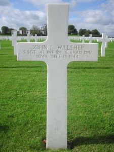 Sgt Willsher enlisted on 12 March 1942 and was sent overseas on 2 February 1944.Source of information: Peter Schouteten, www.wwiimemorial.com, www.5ad.org, www.ancestry.com - Iowa State Census / WWII Bonus Case Files for Beneficiaries, Mount Pleasant News - 11 October 1944