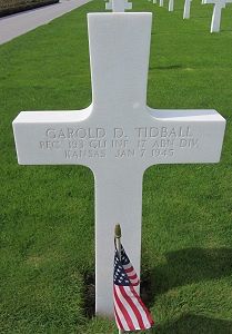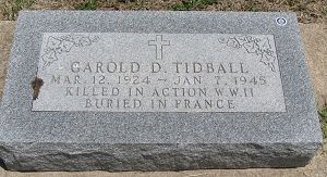Pfc Garold D. Tidball Garold was hit by shrapnel and killed instantly on his first day of battle.He was first buried at the Temporary American Military Cemetery of Grand Failly, France.