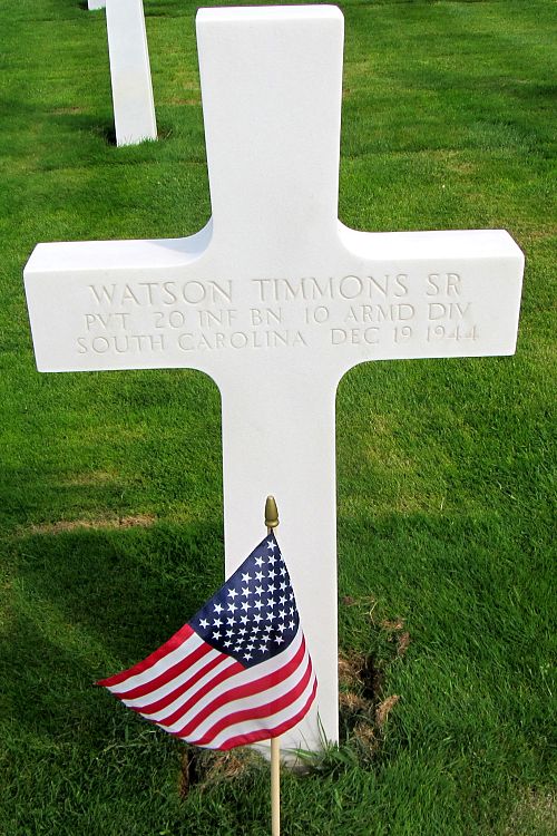 Pvt Watson Simmons Sr. was a foreman before he enlisted at Fort Bragg, North Carolina on 1 April 1944.Source of information: Peter Schouteten, www.abmc.gov, www.wwiimemorial.com, www.archives.gov - WWII Enlistment Record, www.ancestry.com - Headstone and Interment Record / Freeman Family Tree / U.S. WWII Draft Cards Young Men / 1930 Census, www.10tharmored.com, www.findagrave.com