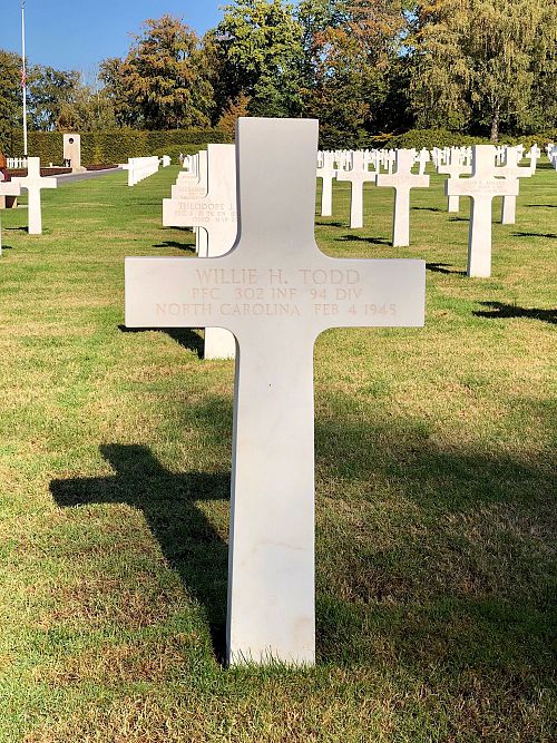 Pfc Willie H. Todd was employed at the Atlantic Coast Line Railroad.He enlisted at Fort Bragg, North Carolina on 5 December 1942 and was sent overseas in August 1943.