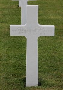 The mother of his children was Myrtle (Harris) Treloar. She filed for divorce, which was granted on 4 January 1945, 3 days after he was KIA. But, she had already remarried someone in December 1944.Pvt Glenn E. Treloar was first buried at Temporary American Military Cemetery Grand Failly, France.