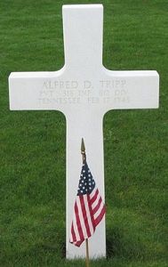 Pvt Alfred D. Tripp worked on the family farm when he in Oklahoma City, Oklahoma on 16 August 1944.He was killed by a bullet in the thorax.
