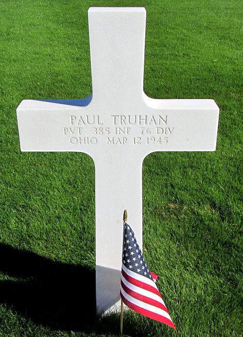 Pvt Paul Truhan enlisted in Cleveland, Ohio on 12 September 1944.Source of information: André Koch, www.abmc.gov, www.wwiimemorial.com, www.archives.gov - WWII Enlistment Record, www.ancestry.com - 1930/1940 Census / Headstone and Interment Record