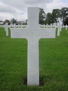 Jose Valdez entered the service on 17 November 1943 at Santa Fe, New Mexico.He attended La Conaha Schools in Velarde for three years. He was a railroad worker before his enlistment. He trained at Fort Bliss in Texas and Fort McCallen in Alabama.