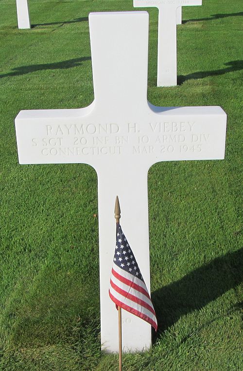 S/Sgt Raymond H. Viebey graduated from Thomas H. Patterson School before he enlisted in Hartford, Connecticut on 23 November 1942. He was sent overseas in September 1944.He was killed by artillery shell fragments in his face.