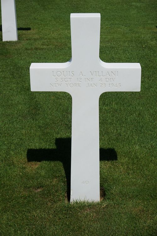 S/Sgt Louis A. Villani attended high school for four years and was a retail manager before he enlisted in New York City, New York on 17 April 1943.Source of information: Peter Schouteten, Danny van der Groen – Company’s / 4ID After Action Reports, www.abmc.gov, www.wwiimemorial.com, www.archives.gov – WWII Enlistment Record, www.ancestry.com - Headstone and Interment Record / 1930 Census