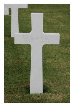 Pfc Roy K. Yoquelet was an employee of Wabash R.R. Co. before he enlisted at Fort Benjamin Harrison, Indiana on 26 March 1944. He was sent overseas in October 1944.Source of information: Leo Minne, www.abmc.gov, www.wwiimemorial.com, www.ancestry.com – 1940 Census / Headstone and Interment Record / U.S. WWII Draft Cards Young Men / Indiana Birth Records, www.80thdivision.com