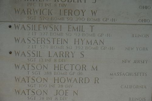 Wassil’s name is recorded on the Walls of the Missing at Netherlands American Cemetery, an American Battle Monuments Commission site in Margraten, the Netherlands, along with the others still missing from World War II. A rosette will be placed next to his name to indicate he has been accounted for.