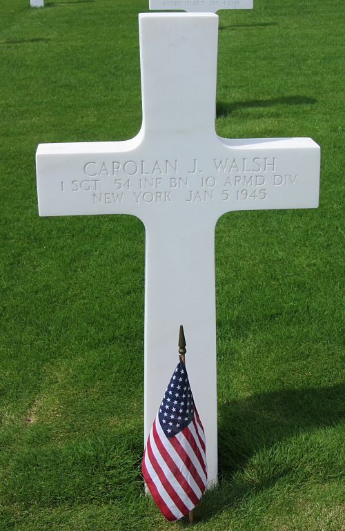 1st Sgt Carolan J. Walsh was a graduate of St. Louis University and Georgetown University, Washington and was an editor for twelve years with the American Law Book Company in Brooklyn before he enlisted.Source of information: Peter Schouteten, www.abmc.gov, www.wwiimemorial.com, www.ancestry.com - Headstone and Interment Record / U.S. WWII Draft Cards Young Men / 1910 Census, www.10tharmored.com, www.findagrave.com, www.newspapers.com – The Tablet 24 February 1945