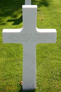 Pvt Rolland J. Preder entered service July 31, 1944. He was sent to Fort Sheridan for his training. In August, he and his twin brother Rollin were home on a three-day pass, and then he was sent to Fort Robinson, Arkansas. In December he spent five days at home on a delay en route to Fort Meade, Md. He he left for overseas duty in January, 1945 and the family received word that he had arrived safely in Belgium. Pvt Preder was a member of the Gibbsville Reformed church.His brother Gerald Preder was killed in action on September 13, 1943 while serving with the armed forces in Italy. Three other brothers were serving with the armed forces at the present time: Pvt Warren Dale Preder in Australia; Pvt Gordon Preder at Fort Bragg, N.C., and Pvt Rollin Preder in Great Bend, Kansas.