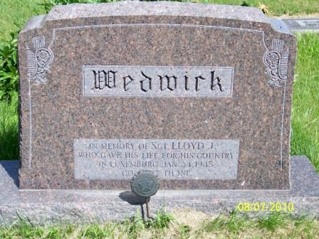 Sgt Lloyd J. Wedwick is remembered at the Dovre Cemetery in Cavalier County, North Dakota.Source of information: Peter Schouteten, www.abmc.gov, www.wwiimemorial.com, www.ancestry.com - Headstone and Interment Record / French Family Tree, www.findagrave.com – Kateb / Kathy