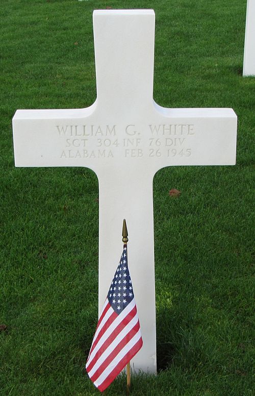 Sgt William G. White enlisted at Fort McClellan, Alabama on 3 June 1943.Source of information: André Koch, www.abmc.gov, www.wwiimemorial.com, www.ancestry.com - Headstone and Interment Record / 1930/1940 Census / U.S. WWII Draft Cards Young Men 1940-1947, http://76thdivision.com/304/history_304th_004.html