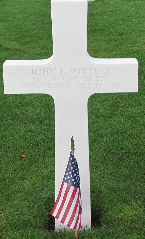 Sgt John I. Whitmer enlisted in Erie, Pennsylvania on 1 April 1943 and was sent overseas in October 1943.Source of information: Peter Schouteten, www.abmc.gov, www.wwiimemorial.com, www.archives.gov - WWII Enlistment Record, www.ancestry.com - Headstone and Interment Record / U.S. WWII Draft Cards Young Men / 1940 Census, www.findagrave.com