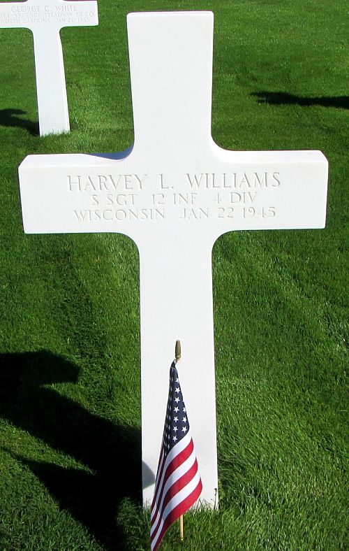 S/Sgt Harvey L. Williams graduated from Whitewater Teacher College and taught at Greenwood High School. In 1942 he began as bookkeeper for the John Wuethrich Creamery Company.He enlisted in April 1943 and was sent overseas in October 1944.