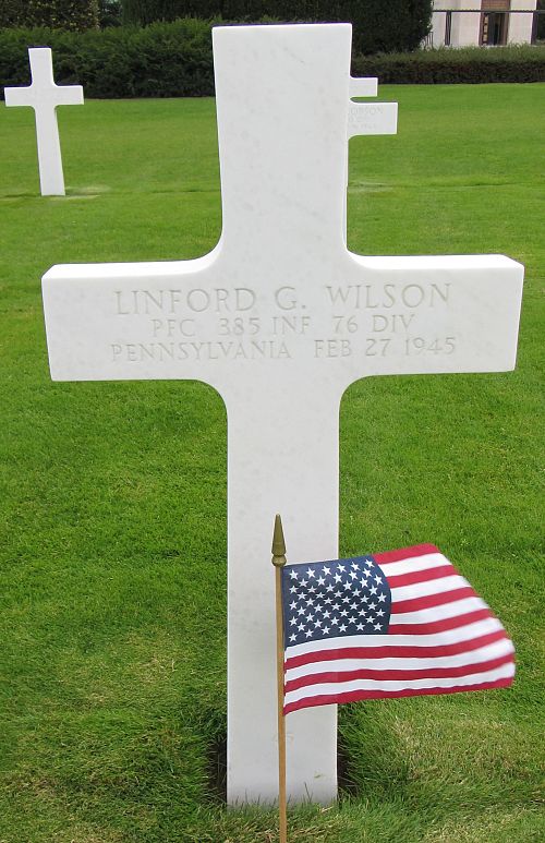 Pfc Linford G. Wilson attended high school and was a blacksmith before he enlisted at Fort George G. Meade, Maryland on 27 April 1944.Source of information: André Koch, www.abmc.gov, www.wwiimemorial.com, www.archives.gov – WWII Enlistment Record, www.ancestry.com - 1930/1940 Census / Headstone and Interment Records / U.S. WWII Draft Cards Young Men 1940-1947 / Pennsylvania Veteran Compensation Application Files WWII 1950-1966