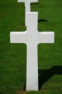 Pvt Ralph W. Wilson attended Wellsville High School when he enlisted in Cleveland, Ohio on 9 November 1943. He was sent overseas in May 1944.Pvt Wilson was awarded the Silver Star Medal postumously. The citation stated: " On 29 December 1944, Pvt Wilson volunteered with two other men to destroy two 20 mm AA guns abandoned by the Germans on a hill south of Bastogne, Belgium. Immediately after the two guns were destroyed, the trio came under heavy machinegun fire and one of the men fell wounded. Pvt Wilson, without regard for his personal safety or the danger involved, went to the aid of the wounded man and removed him out of the line of fire to a place of comparative safety. This area was under direct obeservation of the enemy and still under fire"