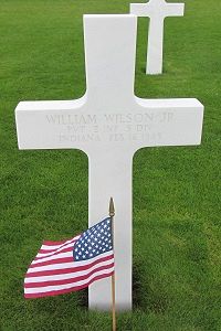 Pvt William Wilson Jr. attended Hobart High School and was employed for a short time by the Pennsylvania Railroad Company before he enlisted in Indianapolis, Indiana on 21 August 1944 and received his training at Camp Croft in South Carolina.Source of information: Leo Minne, www.abmc.gov, www.archives.gov – WWII Enlistment Record, www.ancestry.com – 1930/1940 Census / Headstone and Interment Record / Adams Family Tree / Indiana Birth Certificates, "A footsoldier for Patton" - Michael C. Bilder/James G. Bilder, The 5th Infantry Division in the ETO, www.newspapers.com - The Munster Times