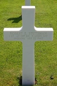 Robert E. Stutsman lived in Indianapolis with his uncle and aunt Mr. and Mrs. John Elder.He graduated from George Washington High School. He had attended Indiana University for three years, where he was a member of the Rifle Team, Pershing Rifles, and the Crack Drill Squad.