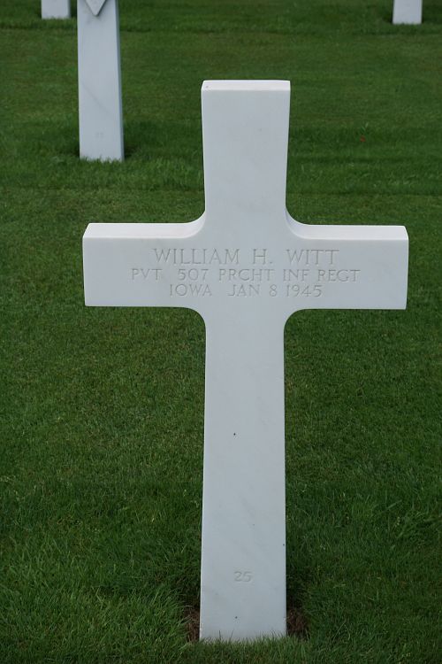 Pvt William H. Witt was employed at the Metz Bakery before he volunteered for the Army of the United States at Fort Des Moines, Iowa on 3 June 1942. he was sent overseas in December 1943.He was first buried at the Temporary American Military Cemetery in Grand-Failly, France.