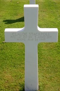 Pfc Claude Stackpole enlisted in Portland, Maine on 2 November 1943.Source of information: Peter Schouteten, www.abmc.gov, www.wwiimemorial.com, www.archives.gov, www.ancestry.com - 1940 Census / U.S. Headstone and Interment Record, http://www.5ad.org