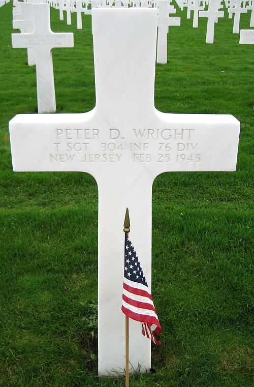 T/Sgt Peter D. Wright graduated from Camden High School and was employed by the Supplee-Wills-Jones Milk Company before he enlisted at Fort Dix, New Jersey on 10 June 1942.Source of information: André Koch, www.abmc.gov, www.wwiimemorial.com, www.archives.gov – WWII Enlistment Record, www.ancestry.com - 1930/1940 Census / Headstone and Interment Records, http://76thdivision.com/304/history_304th_004.html, www.newspapers.com - The Morning Post Camden, New Jersey - 31 March 1945