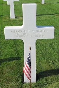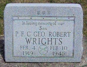 Pfc George R. Wrights graduated from Bunker Hill High School, Indiana, where he was a member of the basketball team. He was employed by the Michigan Bell Thelephone Company.He enlisted in April 1944 and was sent overseas in December 1944.