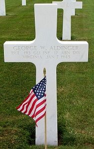 Pvt George W. Aldinger enlisted in Fort George G Meade, Maryland on 23 February 1944.He attended high school for 4 years and was a sales clerk before he enlisted.