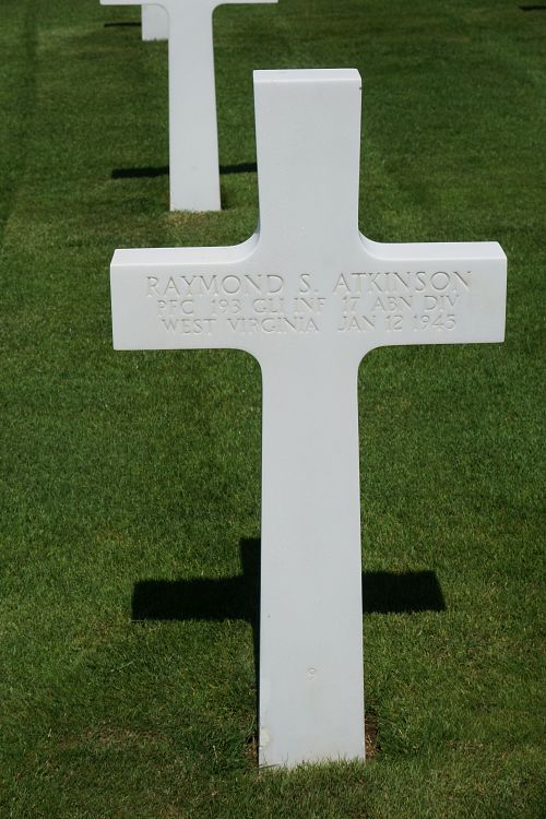 Pfc Raymond S. Atkinson enlisted in Huntington, West Virginia on 7 April 1943.He attended high school for 1 year and worked on a farm before he enlisted.