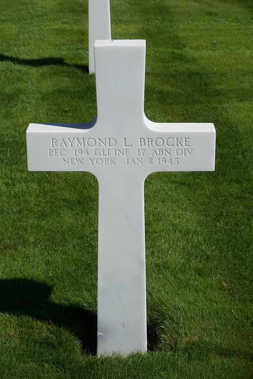 Pfc Brocke was first buried at the Temporary American Military Cemetery of Grand Failly, France.