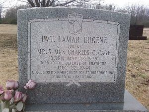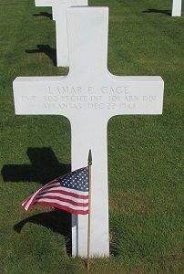 Pvt Lamar E. Cage was first buried at Temporary American Military Cemetery Grand Failly, France.He is remembered at Waldenburg Cemetery in Waldenburg, Poinsett County, Arkansas with a memorial marker.
