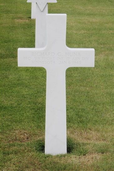 Pfc Richard G. Huna was first buried at Temporary American Military Cemetery Grand Failly, France.Source of information: Peter Schouteten, www.abmc.gov, www.wwiimemorial.com, www.ancestry.com - Headstone and Interment Record / 1930 Census / Minnesota, Birth Index, http://www.ww2-airborne.us