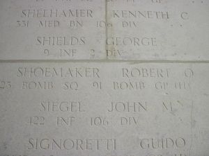 On 5 October 2017 the DPAA/JPAC offically anounced that the remains of Robert Shoemaker, John Liekhus, Allen Chandler, Bobby Younger and John Brady, who are all remembered on the Tablets of the Missing at Henry-Chapelle, have been accounted for. They now all have their final resting place at the Arlington National Cemetery in Arlington, Viriginia.