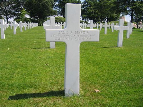 Jack Hargis attended college before he volunteered for the Air Corps of the Army of the United States at Stockton Field, California on 13 March 1942.According to crew members of other airplane in the formation, this B-17 was hit by enemy aircraft, knocking out two engines. It rolled over as if both pilots had been killed and went down "as a ton of bricks". According to one of the surviving crew members, Lt Hargis bailed out but his parachute didn't open.