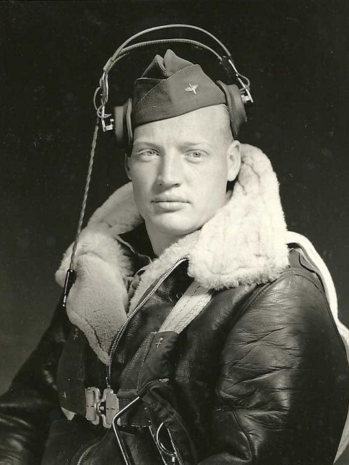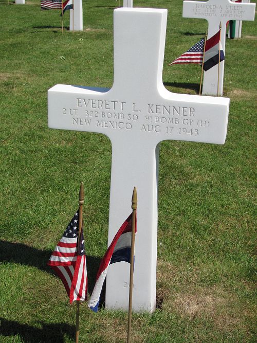 A/C first started to get into trouble over Mayen, Germany, before ever reaching the ball-bearing factories at Schweinfurt. Egender and Vender both remember the vicious and unrelenting head-on attacks of German ME-109's and FW-190's which passed literally within feet of the bombers as they rolled past them. Egender reported that a string of 7 FW-190's were attacking at a near-level altitude from dead ahead, a popular attack strategy that exploited the Flying Fortess' weakest area of defensive gunfire in the nose of the aircraft. The fighters pumped a continuous stream of shells into A/C, raking the ship from left to right as they passed and rolled away at the last second. The fighter in the middle of the attacking group found is mark. Gunfire hit and destroyed the number 2 engine, ran across the inboard wing setting it a fire, and then hammered into the flight deck. Both Pilot Everett Kenner and Co-Pilot George Bryan were killed instantly. According to a later report by Flight Engineer Sgt Glen Chase, both Pilots were decapitated in the attack. Egender recalls that he was leaning over the bombsight when the attack commenced. He remembers the Plexiglas nos getting hit and a 20mm cannon shell exploding under the bombsight, throwing hiw from the nose back into the tunnel below the flight deck. The dazed bombardier remembers the aircraft's nose being filled with smoke and the smell of cordite permeating in the air. Egender, now with a minor wound on his right leg, regained his wits and stuck his head up into the cockpit. Chase came down from the top turret when the fire hit his cockpit. From the flightdeck he informed Egender that the pilots were dead and that he should get out.Source of information: Michel Beckers, www.ae.msstate.edu - MACR, www.ancestry.com - Headstone and Interment Record / Family Tree