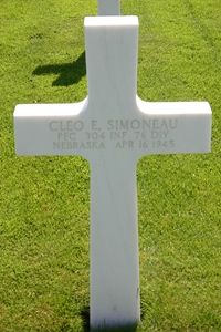 Private Simoneau fraduated from Beatrice High School. He had been overseas since November 1944.German sniper fired two shots across the Zschopau River. The sniper's first hit him in the leg, knocking him down, after which the snipes fired a second shot, killing him instantly.