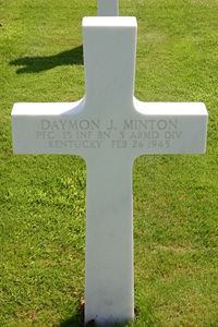 Pfc Daymon J. Minton was employed by the Cleveland Wrecking Company before he enlisted on 11 May 1944 and went overseas in December of the same year.Source of information: Peter Schouteten, Raf Dyckmans, Laura Phillips, www.abmc.gov, www.ancestry.com - 1930 Census / Minton-Miller Reviews Family Tree (Earlene Embry), www.wwiimemorial.com, www.archives.gov, www.5ad.org