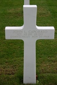 John L. Caporaso worked as a laboratory technician before he enlisted at Fort Devens, Massachusetts on 8 March 1944.He joined his unit from a replacement depot on 9 October 1944. He was lightly wounded in action on 18 October 1944 but remained on duty and was promoted from Private to Sergeant on 24 October 1944.