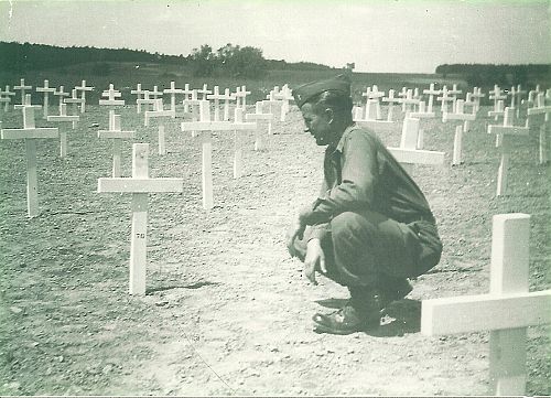One picture shows his uncle, Army Chaplain Jesse Jone, kneeling at his grave at the cemetery in Foy.