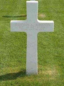 Pvt Thurman Johnson was employed at the Leonard Brothers store before he enlisted in September 1943.He joined his unit on 22 June 1944 and was lightly wounded on 29 June 1944 for which he was awarded the Purple Heart Medal a first time.