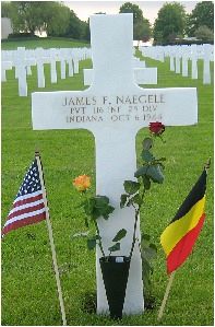 James F. Naegele's father died in 1927 and his mother remarried with Clarence W. Waldon. His mother died a few years later in 1932 and James and his sister Helen were adopted by his grandparents.Pvt Naegele enlisted on 19 November 1943. He joined his unit on 9 August 1944.