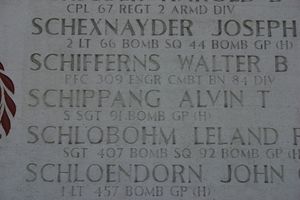 Alvin Schippang volunteered for the Air Corps of the Amry of the United States in Philadelphia, Pennsylvania on 16 January 1942.The airplane made it through the flak over the target without being hit. On the way out to the coast she was attacked by fighters inflicting heavy damage. Still, it remained in formation. At 1326 hours, as the aircraft passed 3 miles east of Emden, it III took direct flak hits that knocked out the No. 3 engine and set the No. 4 engine afire. The pilot, Lt Lindsey, feathered the No. 3 engine. Almost immediately afterwards another anti-aircraft shell burst into the cockpit killing both Lt Lindsey and the copilot, 2nd Lt George Slivkoff. More flak hits smashed into the aircraft. It began slowly circling downward in the direction of Norden and the North Sea.